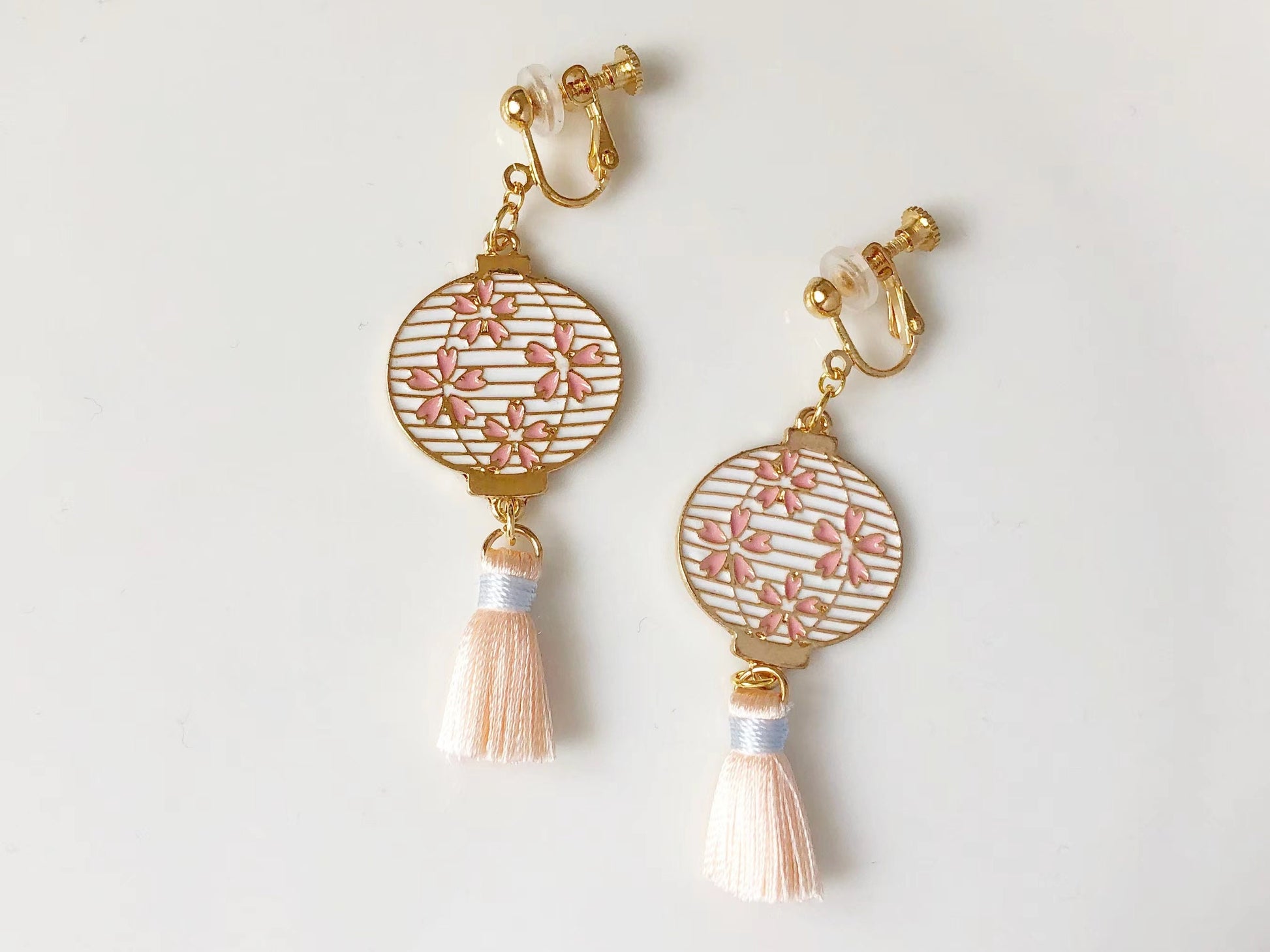 Chinese/Japanese lantern Clip-on/ stud earrings with beautiful tassel, Luna new year gift, Cute handmade gift for her, Luna new year gift