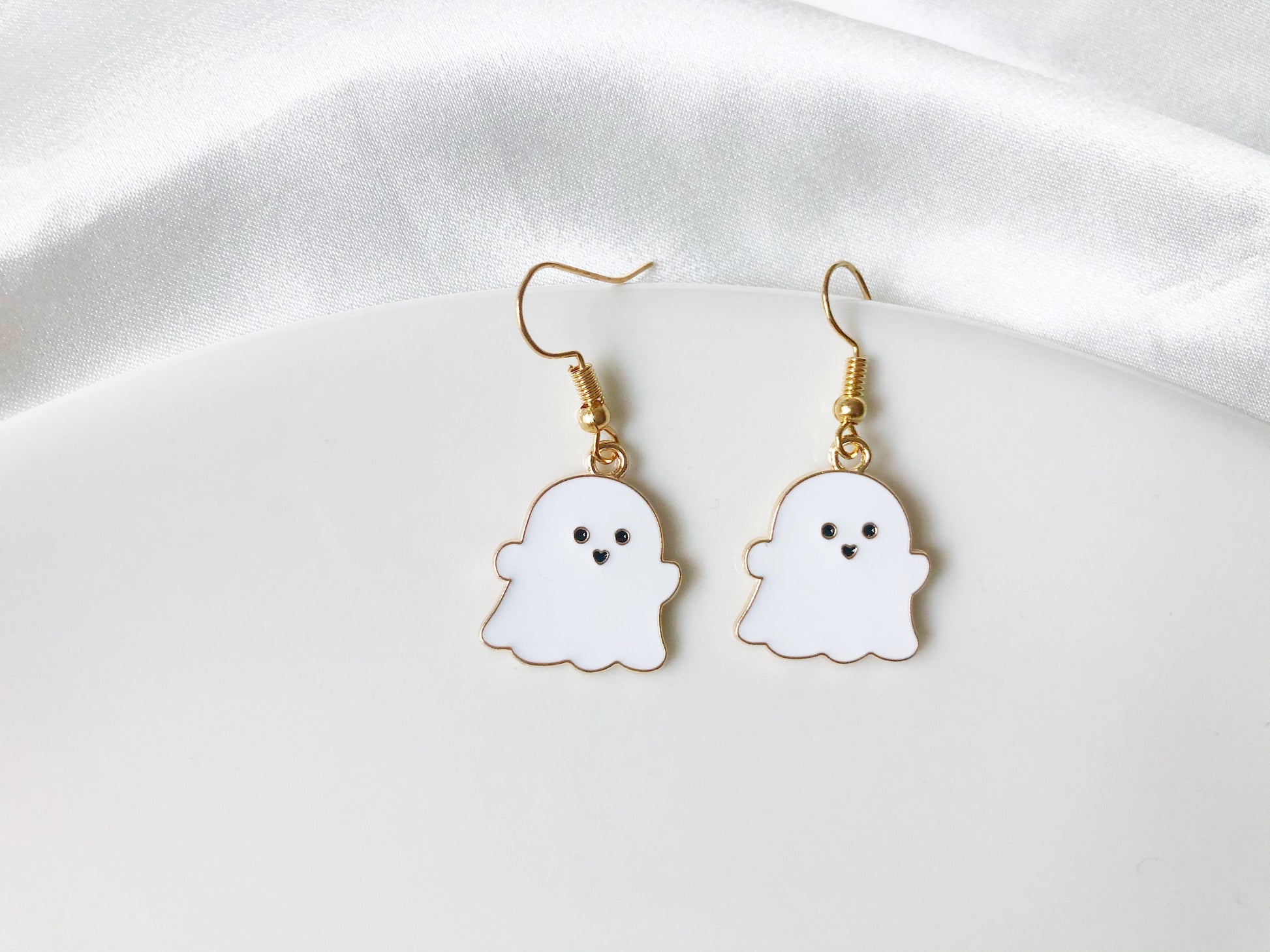Cute Halloween Ghost Earrings | Spooky Stud or Clip-On | Fun Halloween Jewellery | Gift for Her or Teen