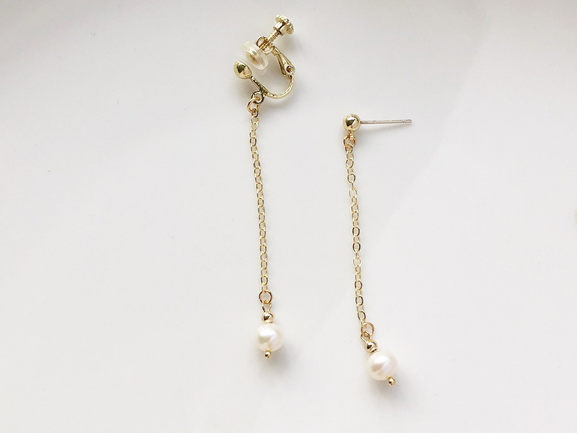 Dangle white freshwater pearl drop Stud / Clip on Earrings, Gift for her