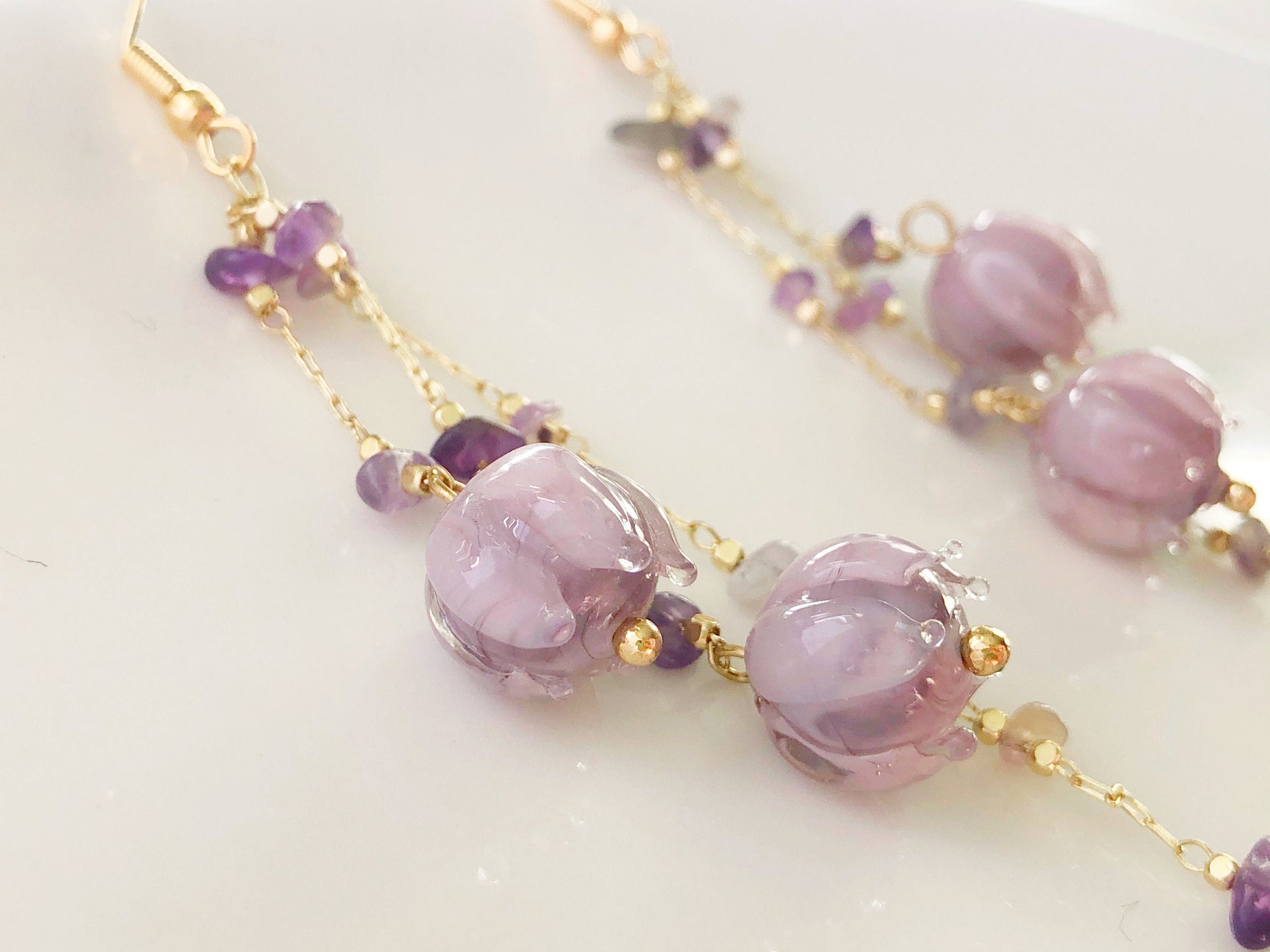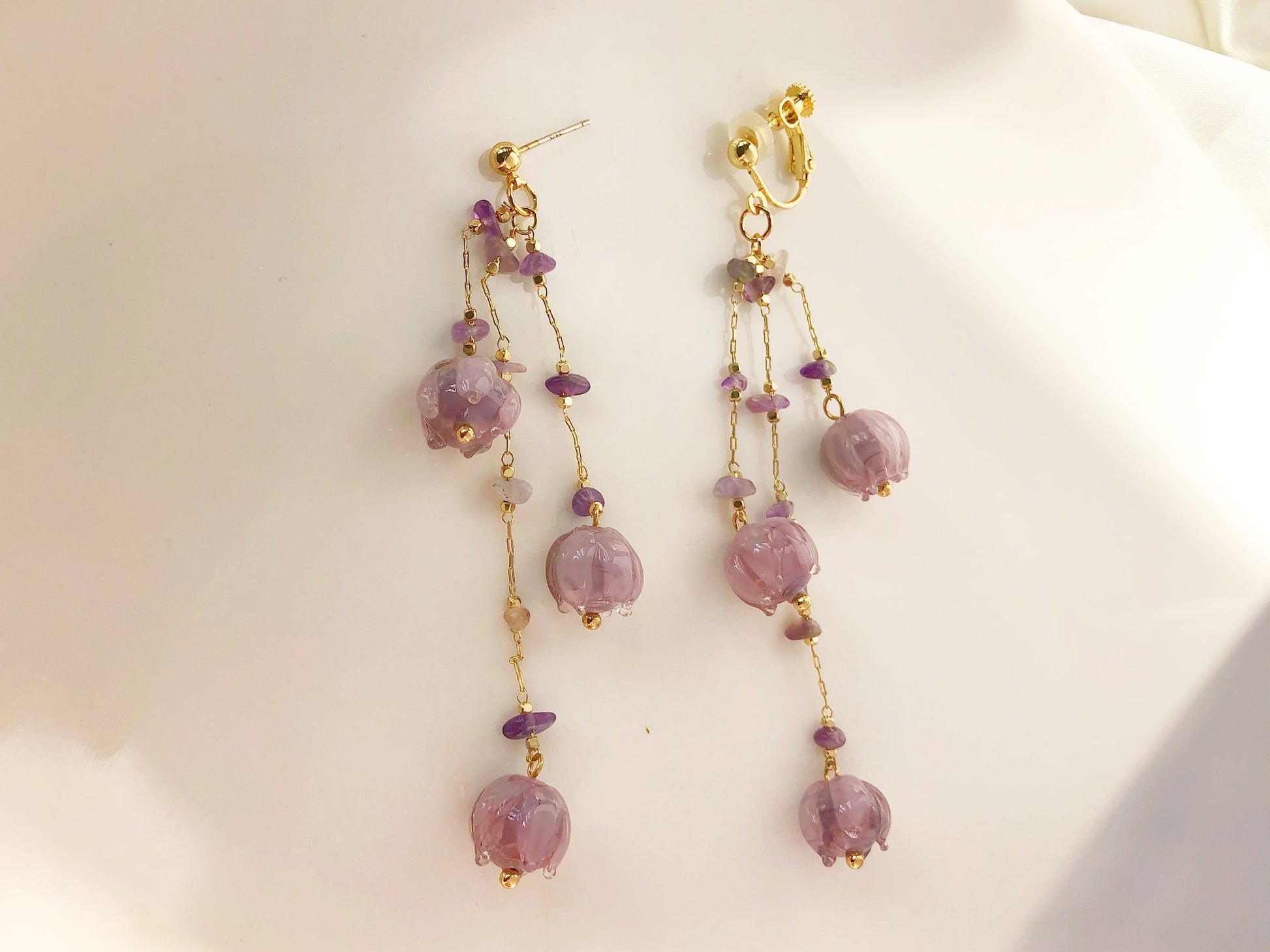 Fancy purple flowers Clip-on/ stud earrings, floral handmade earrings, gift for her