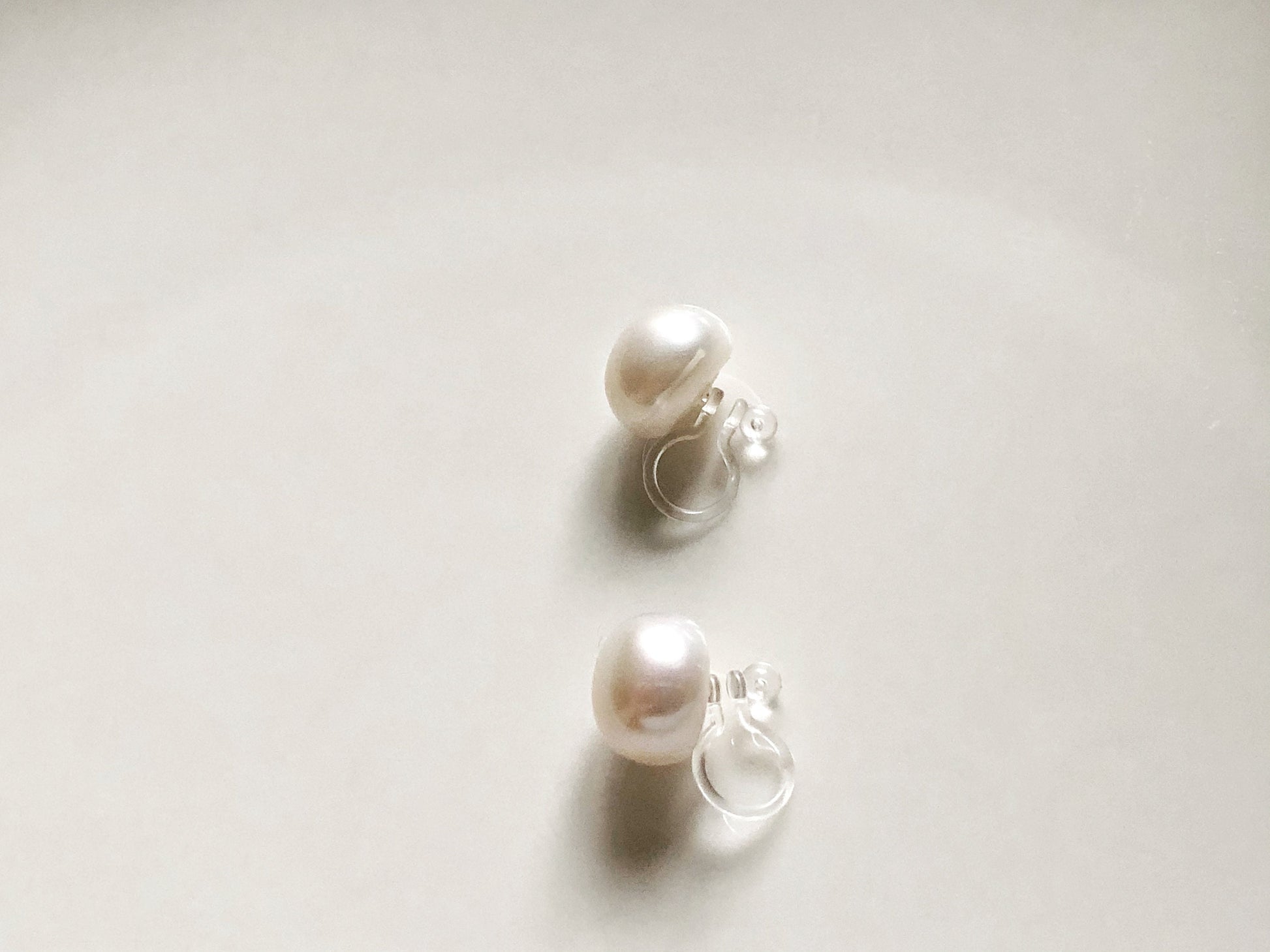 White freshwater pearl Clip-on Earrings, non-pierced earrings, Gift for her