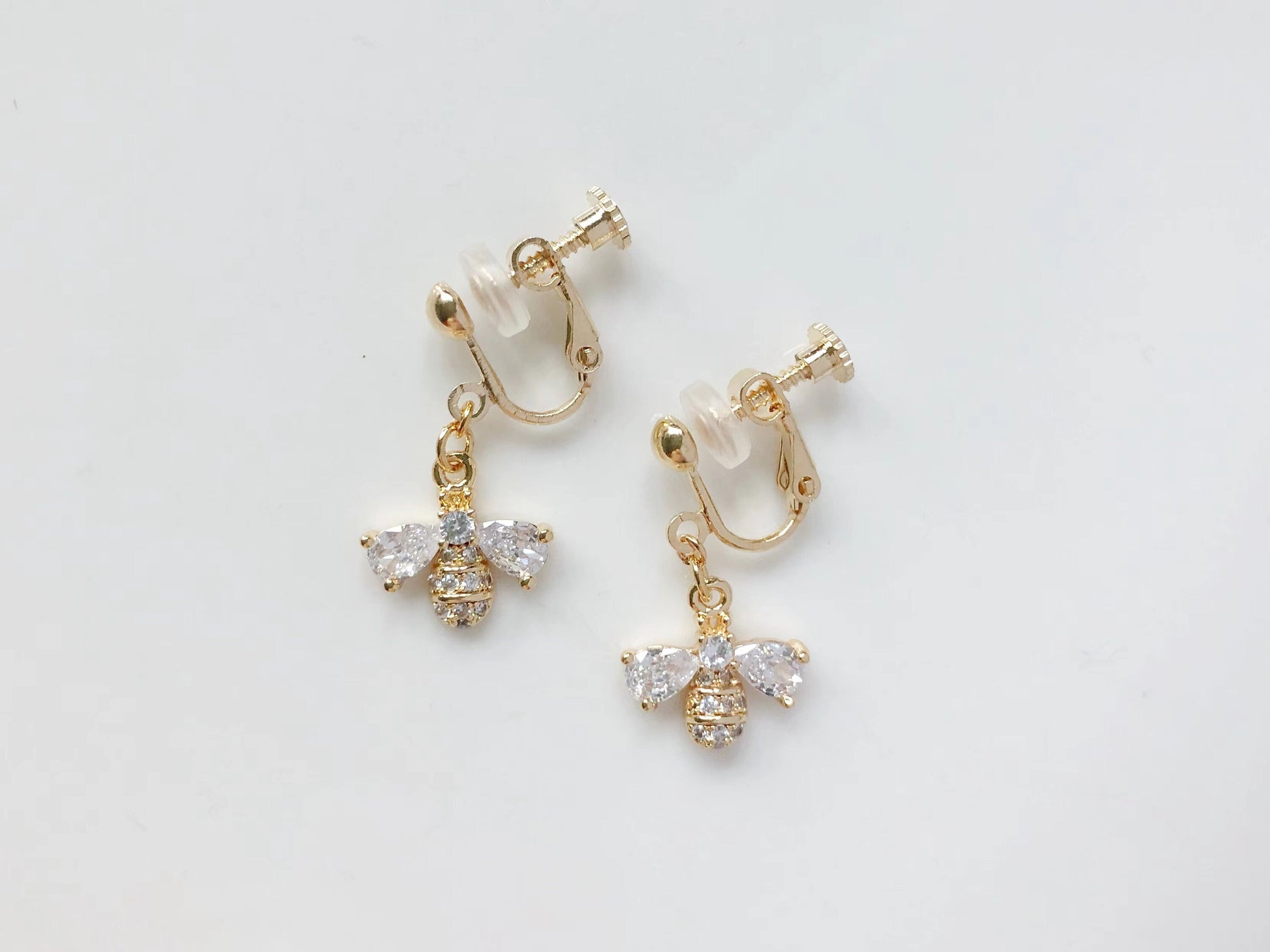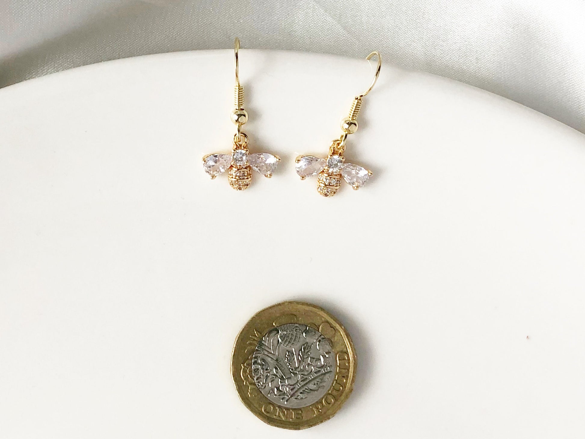 Gold Bee Earrings, Bumblebee and Bear bee earrings, Gift for her