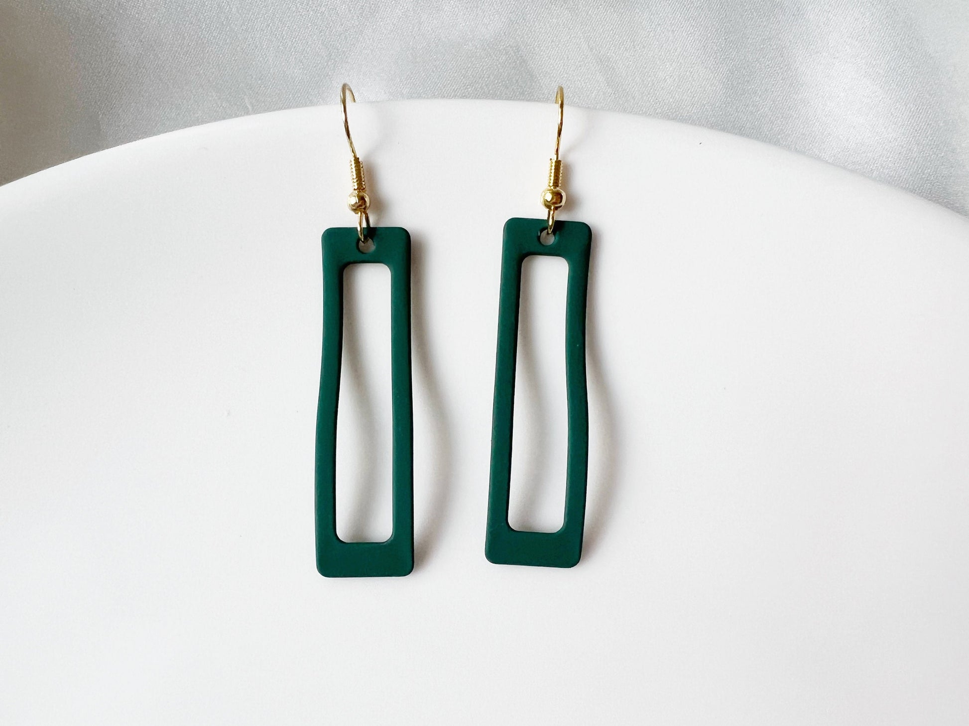 Green/ Yellow/ pink rectangle Ring clip on Earrings, Geometric dangle pendant, Gift for her