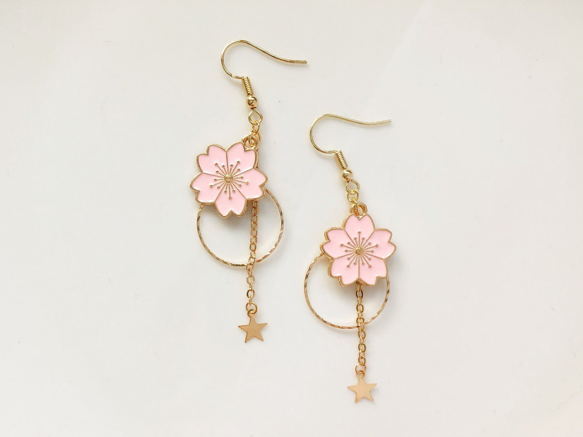 Sakura Cherry Blossom Earrings | Enamel Floral Jewellery | Clip On or Stud | Spring Gift for Her | Non Pierced Option