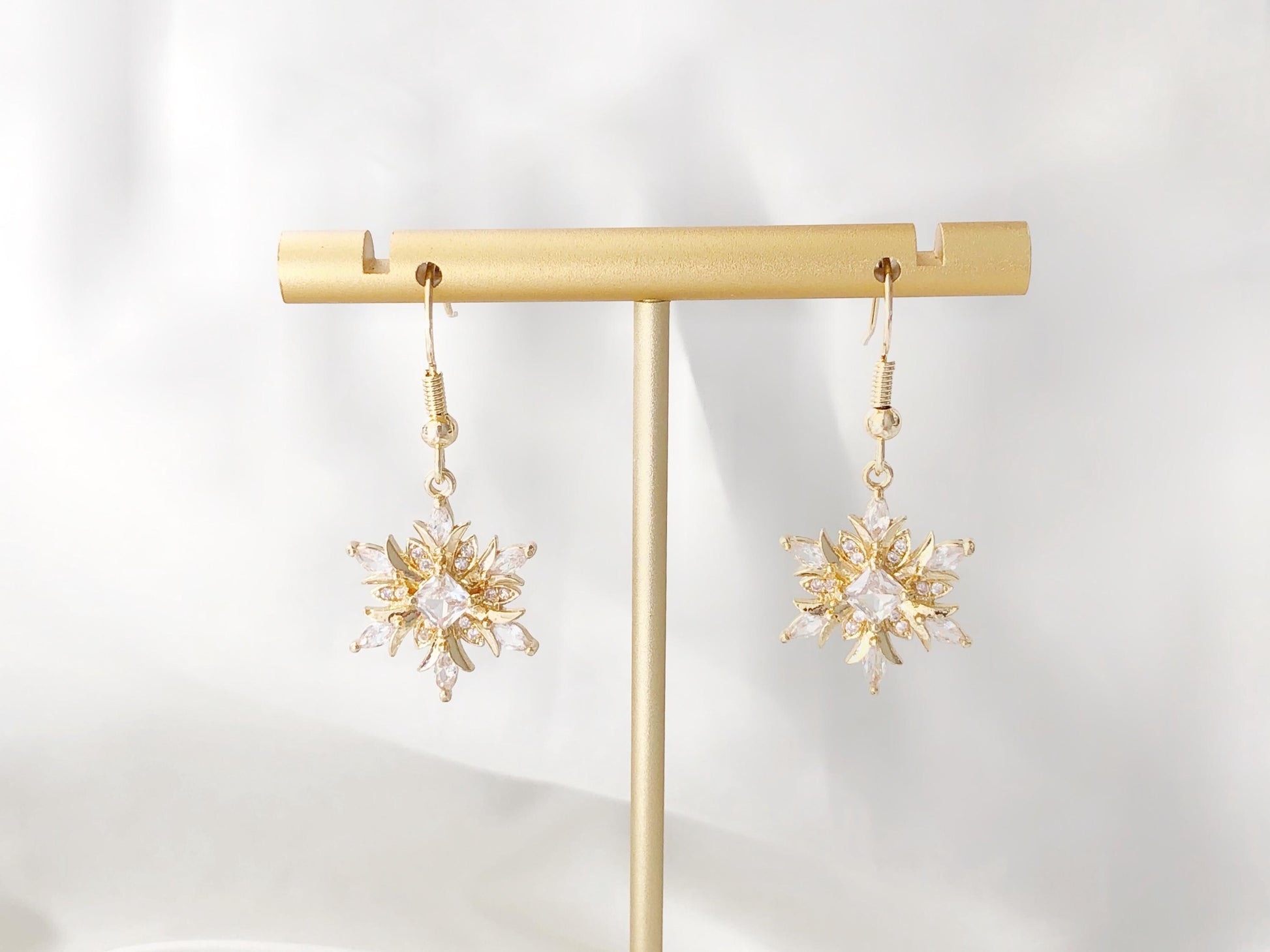 Snowflake Earrings Zircon Crystal Dangle Clip On Stud Hook Christmas Winter Jewellery for Women Pierced Non Pierced Sparkly Gift for her